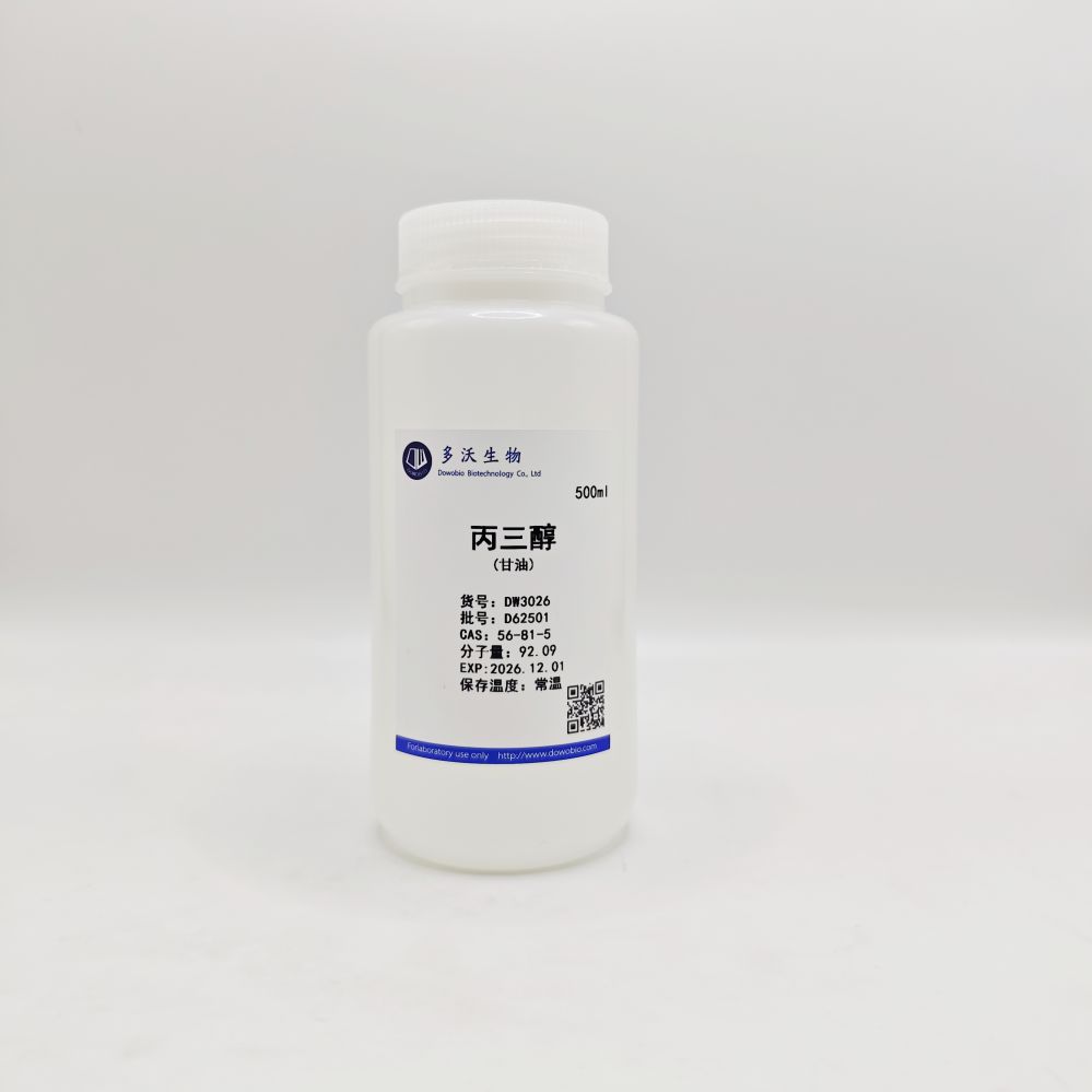 甘油为100%优质甘油常用作溶剂、润滑剂以及保护剂等。该试剂仅用于科研领域,不宜用于临床诊断或其他用途。